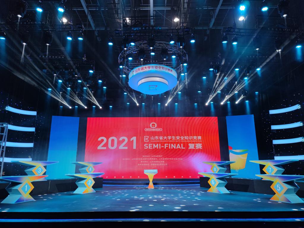 山东省大学生安全知识竞赛活动的主题是“维护国家安全 你我共同承担”,由山东省教育厅、山东省公安厅、山东省国家安全厅、山东省应急管理厅、山东省广播电视局、山东省消防总队指导,山东省学校安全研究与教育基地、山东省高等学校安全保卫协会主办,山东传媒职业学院承办,中国电信山东分公司提供技术支持。活动自2021年2月19日启动以来,全省高校热情响应、积极参与,截至目前,参与学生达到200多万人次,经过校内选拔赛、片区赛选拔,14所院校进入复赛。27日上午,在学院600平演播厅进行复赛,最终山东药品食品职业学院、山东警察学院、中国海洋大学、临沂科技职业学院、山东理工大学、曲阜师范大学、济南大学和山东传媒职业学院等8所高校代表队会师决赛。