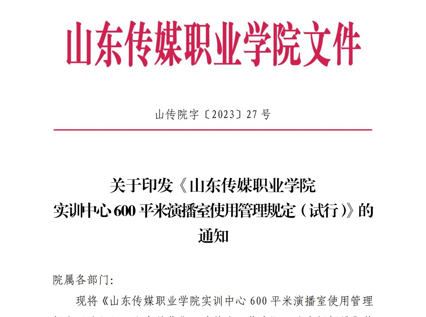 山传院字〔2023〕27号关于印发《山东传媒职业学院实训中心600平米演播室使用管理规定(试行)》的通知